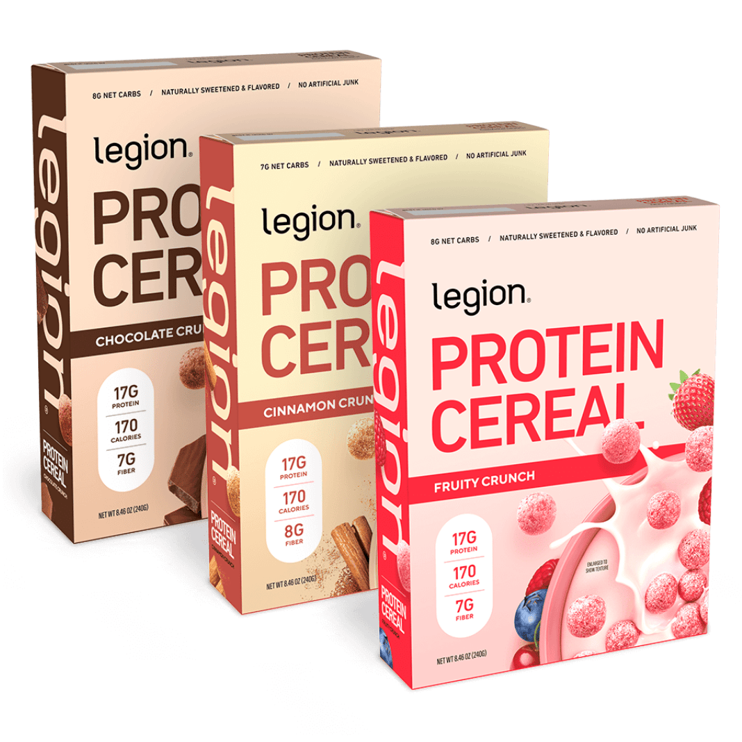 Better by the Bowl: New cereals use milk protein concentrate to deliver 17g per serving. The cereals also incorporate tapioca fiber and inulin for 7-8g of prebiotic fiber in each serving. Credit: Legion Athletics Inc.